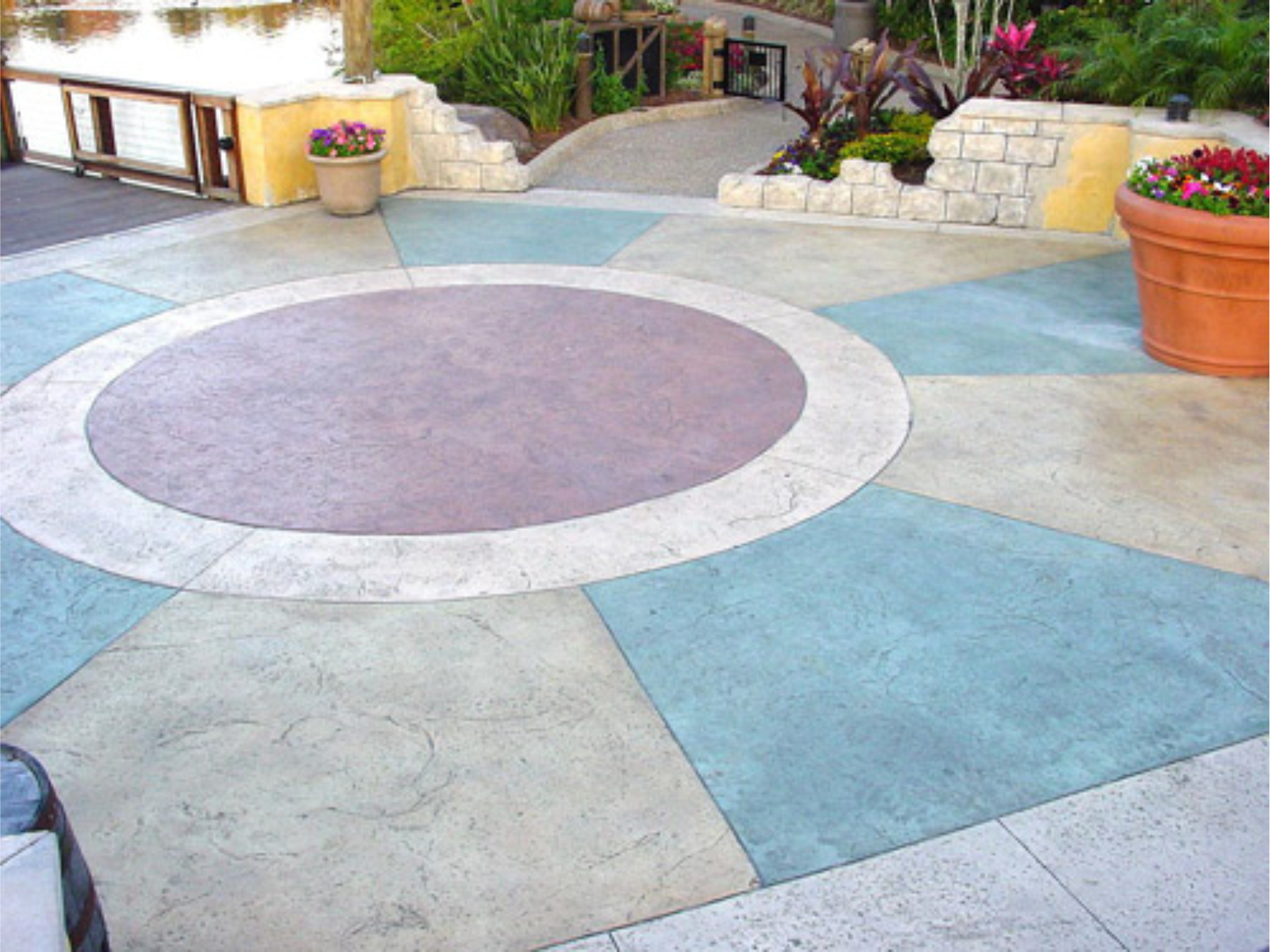 Pool Decks: Visually appealing, cooler surfaces around swimming pools.