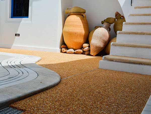 Outdoor living and entertainment areas can be elegantly designed with non-slip, permeable surfaces like outdoor patios and terraces.